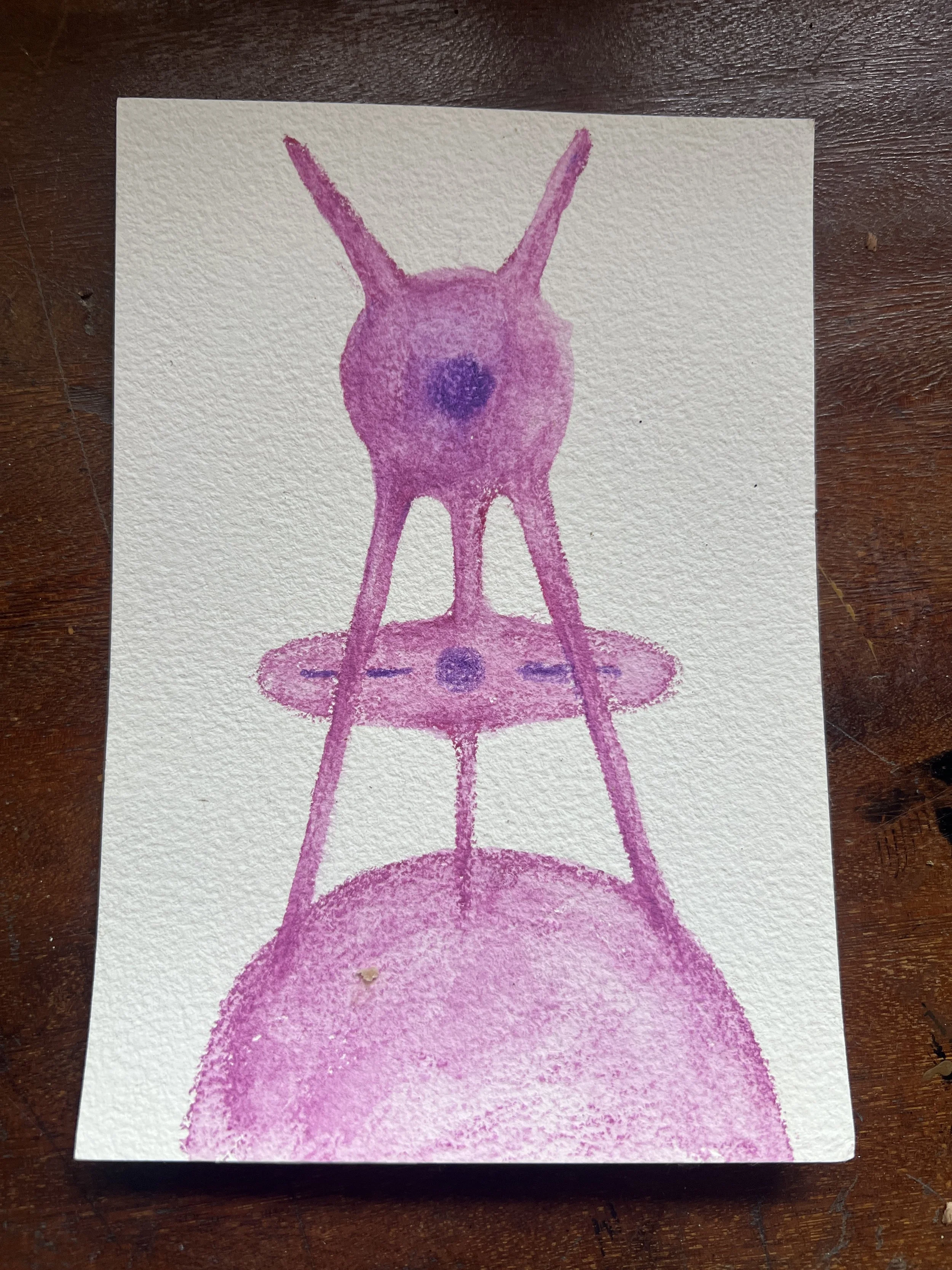 Image 3: A watercolor sketch exploring the idea of the fifth leg extending directly into the earth, like a taproot. It introduces a gesture of growth and grounding—almost as if the sculpture is birthing something through its connection to the ground. It’s a symbolic gesture of life, emergence, and deep relationship with place. While I’m continuing to experiment with variations, I’m most drawn to the proportion and presence shown in Image 1.